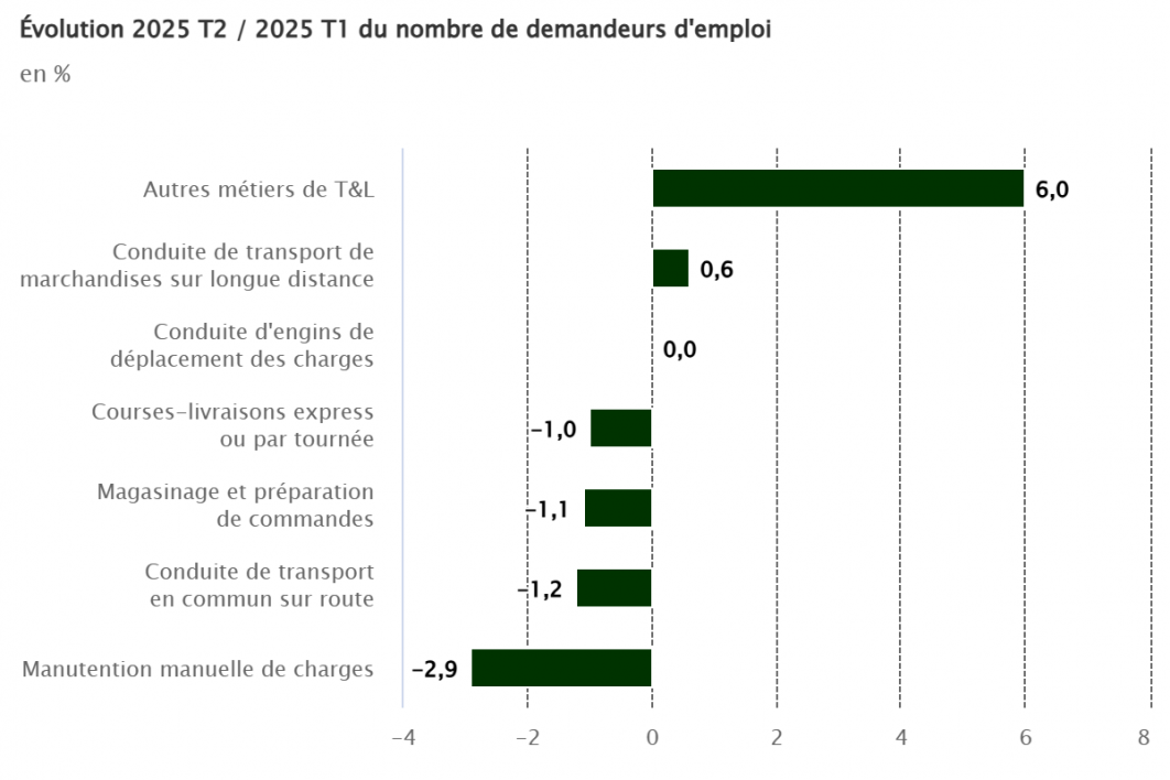 Au deuxième trimestre 2025, le nombre de #demandeurs d'#emploi augmente pour les #conducteurs de poids lourds sur longue distance (+ 0,6 %) pour le quatrième trimestre consécutif.